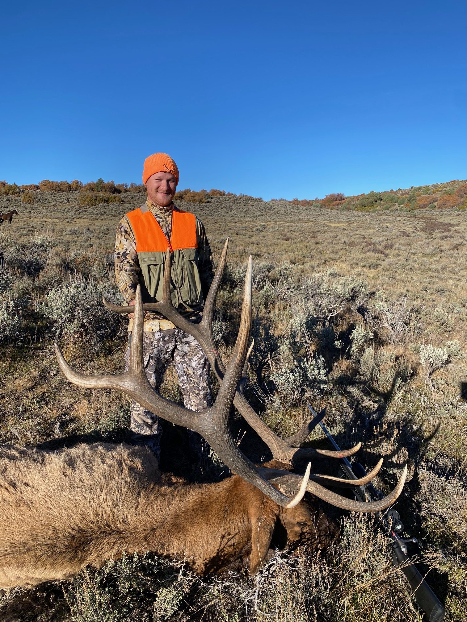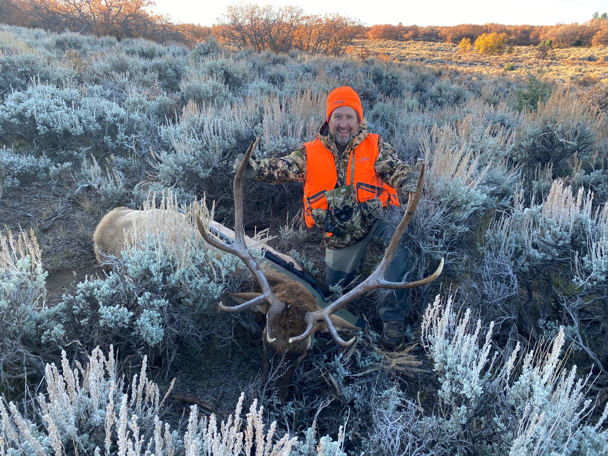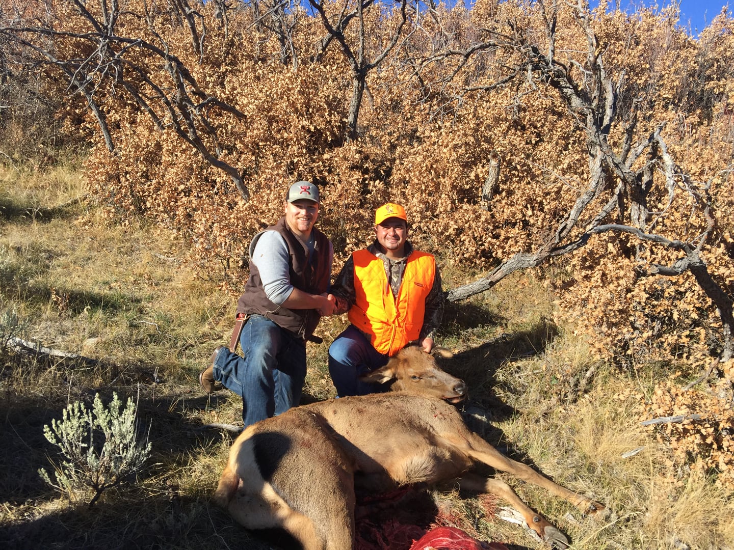 Jackson Outfitters focuses on trophy bull elk and cow elk hunts in unit 61. We hunt on private property and are permitted to hunt on a vast area of public land in the Uncompahgre National Forest as well as Bureau of Land Management. The terrain is a mixture of high desert plateau and deep canyons, scrub oak, ponderosa pine and lodge pole pine cover, and the elk love to rut here. We have a residential herd that remains in the area year-round giving us the opportunity to hunt September through mid-December on public and private land.